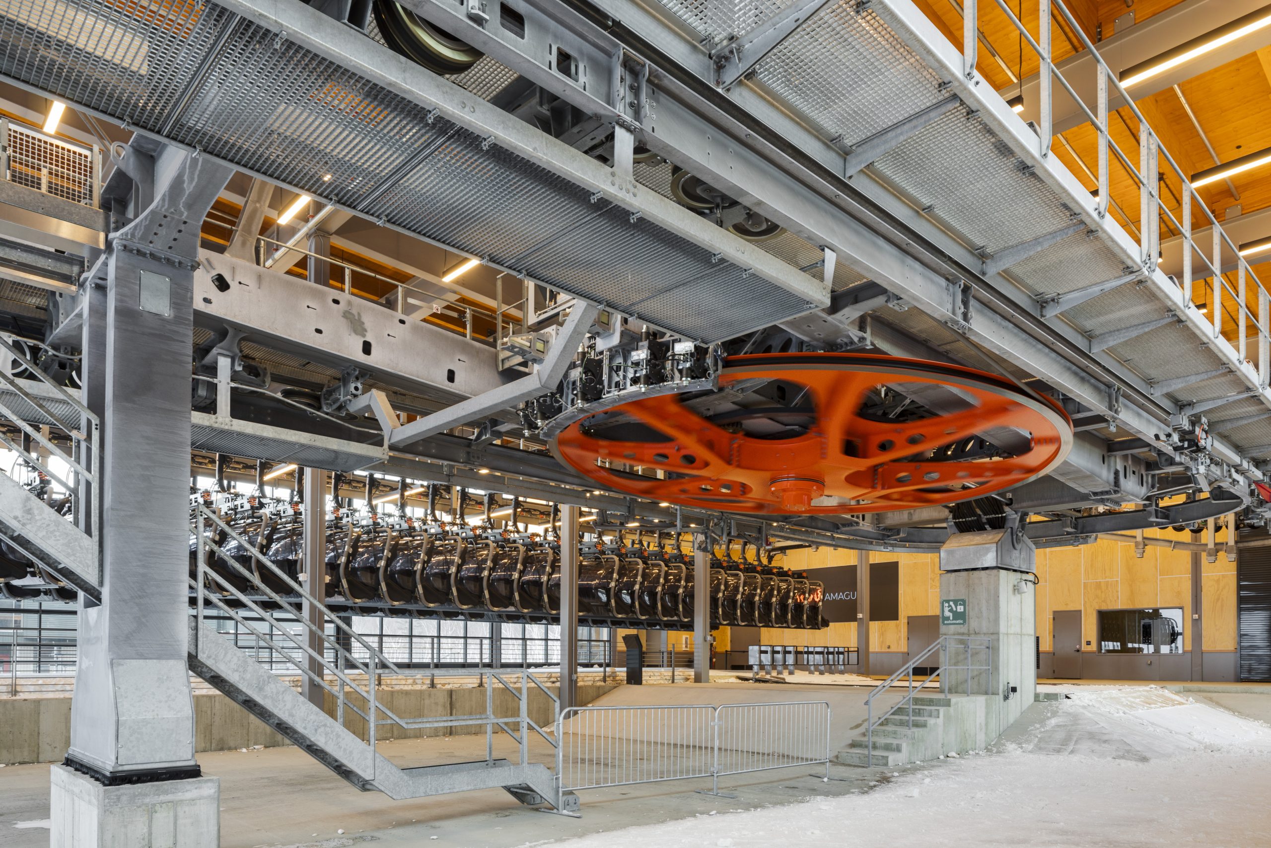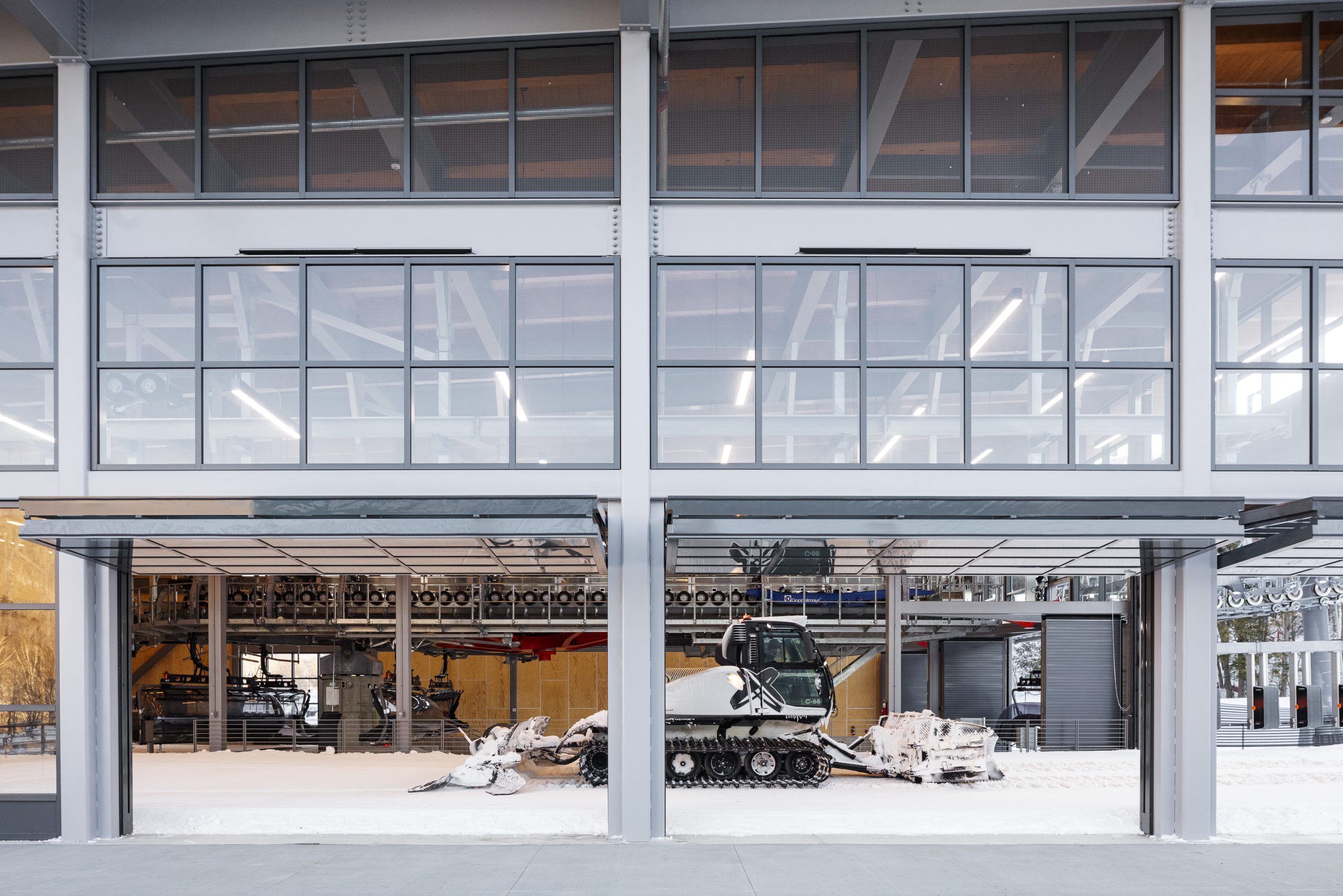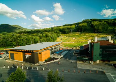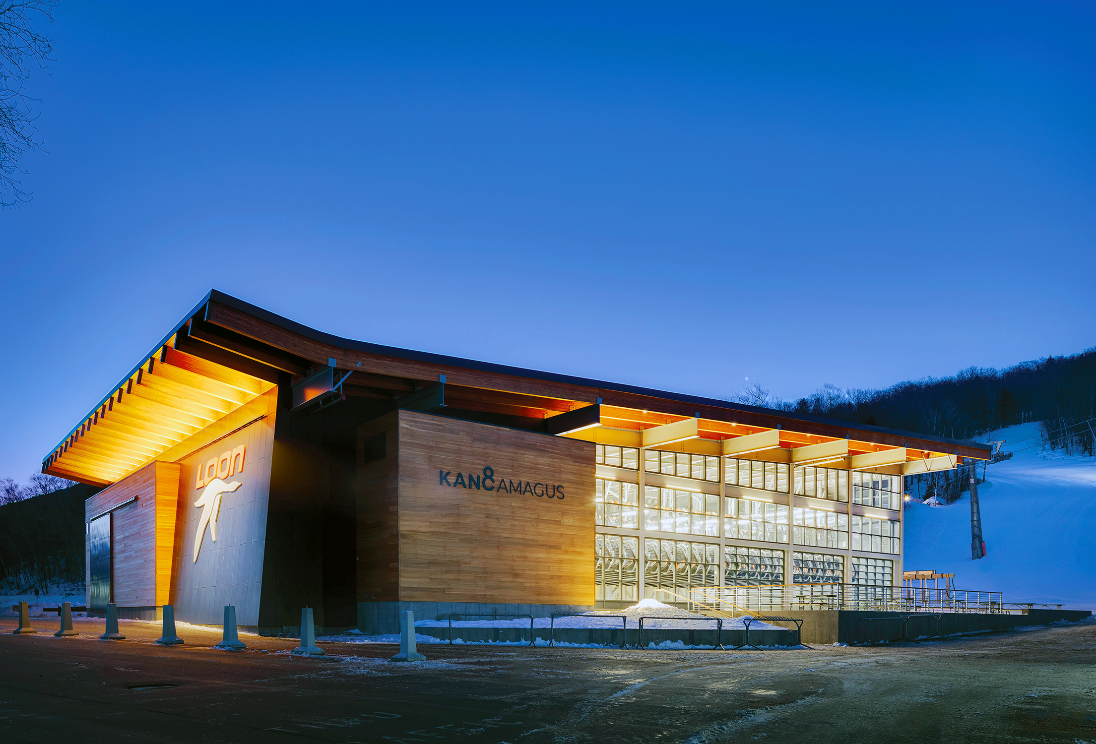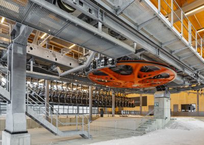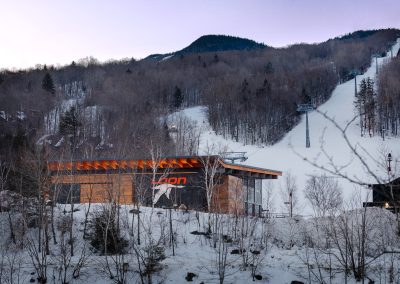 Bull Stockwell Allen designed a first-of-its-kind, semi-enclosed pavilion that wraps around the Kancamagus 8 lift at Loon Mountain Resort. North America’s most technologically advanced chair lift, Kanc8 is an eight-seat, D-Line Doppelmayr chair with ergonomically shaped heated seats and tinted bubble. Opening up to an adjacent plaza, the Kanc8 pavilion creates a multi-use assembly space that stretches its value beyond the winter and ski season for year-round utilization. Kanc8 will provide skiers a covered loading experience, protecting them from the elements in the winter, and a loading base for bikers in the summer months. This custom open-air structure is notably different from its predecessor in drastic and eye-catching ways; with versatility and high-performing functionality being a critical consideration in this design, aesthetics were upheld to just as high a priority and standard, resulting in this stunning structure that nestles perfectly and unobtrusively into, rather than on, the site.