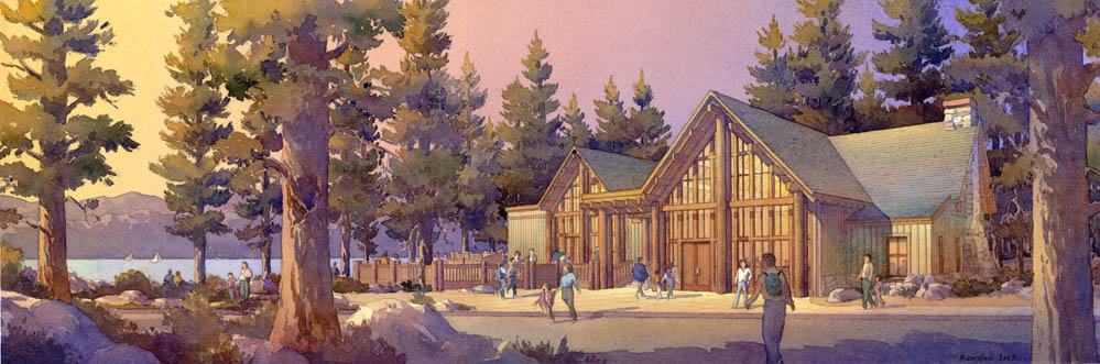 Literally designed around the site’s many ponderosa pines, Sand Harbor’s 6,000 square foot interpretive and concession facility draws on the site’s native trees for its structural inspiration. The facility is constructed of a double column, pole framed structure that underscores the trees’ monumental verticality. The facilities serve a large tourist and local population in the spring and summer months, offering indoor and outdoor deck dining, equipment rental and restrooms. The project also demonstrates the firm’s environmentally sensitive approach to architecture and over 40 years of Tahoe Basin experience.